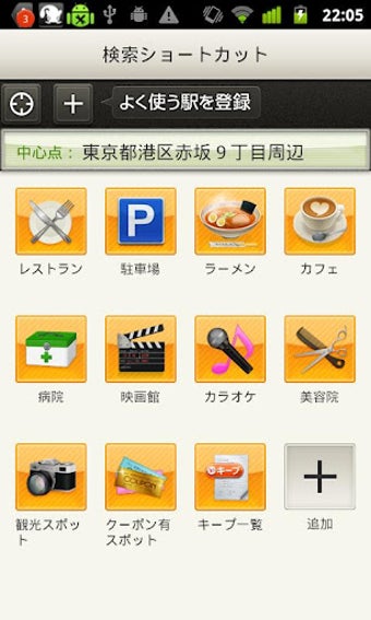 ロコサーチ Yahoo!ロコは簡単操作で求めるジャンルの周辺施設を簡単に調べられるAndroid向けの無料周辺地域検索アプリです。レストラン、ラーメン屋、病院、映画館、美容院などのアイコンをタップするだけで近くのお店を簡単に検索できます。検索した店舗は詳細情報を表示できるだけでなく、地図表示や現在地などからのルート検索が行え、調べたその場から迷うことなくお店に到達できます。探索したルートではAR(仮想現実)ルート案内なども行えます。友人と急に食事に行くことになってしまった時や昼ごはんを食べに行くお店のマンネリ感にうんざりした時、急に時間が空いて周辺の観光スポットに行きたくなったときなどには非常に便利に使えますのでダウンロードしてみてはいかがですか。